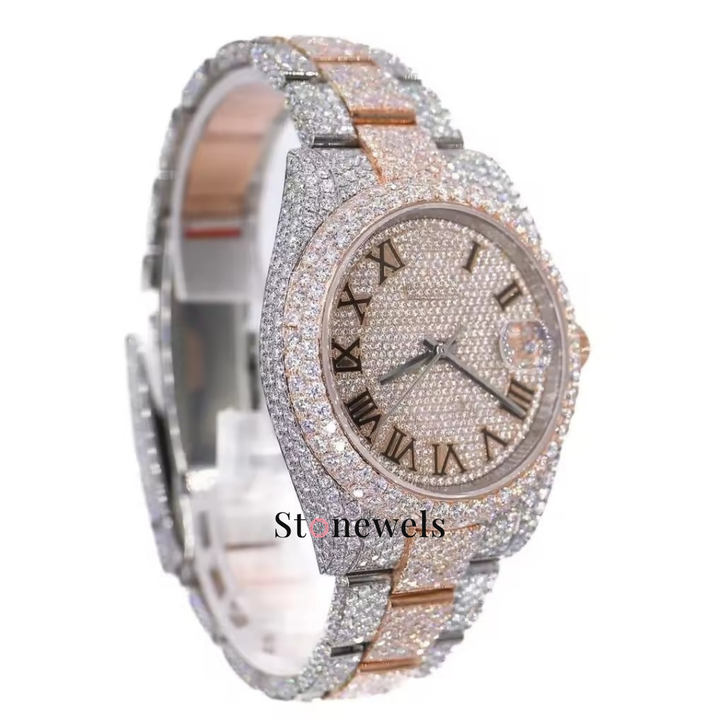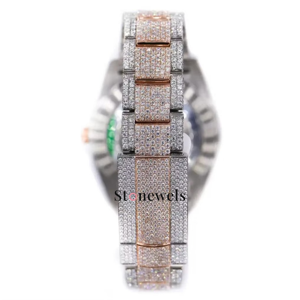 New Trendy Luxury Handmade Fully Ice VVS Moissanite Watches Diamond Automatic Movement Glass Dial Window Analog Hip Hop Style