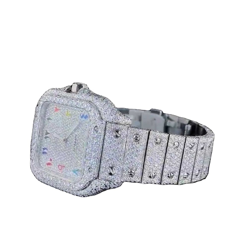 New Trendy Luxury Moissanite Watch Square Watch Full Iced Out Diamond for Men Wristwatch Waterproof Quartz Watches