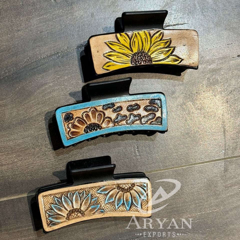 Product name:Hand Tooled Leather Women Hair Claw Clip