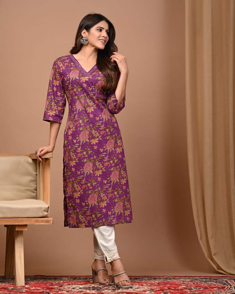 New Trendy Traditional Indian Cotton Kurti Set with Embroidery Ladies Kurta for Summer At Wholesale Price