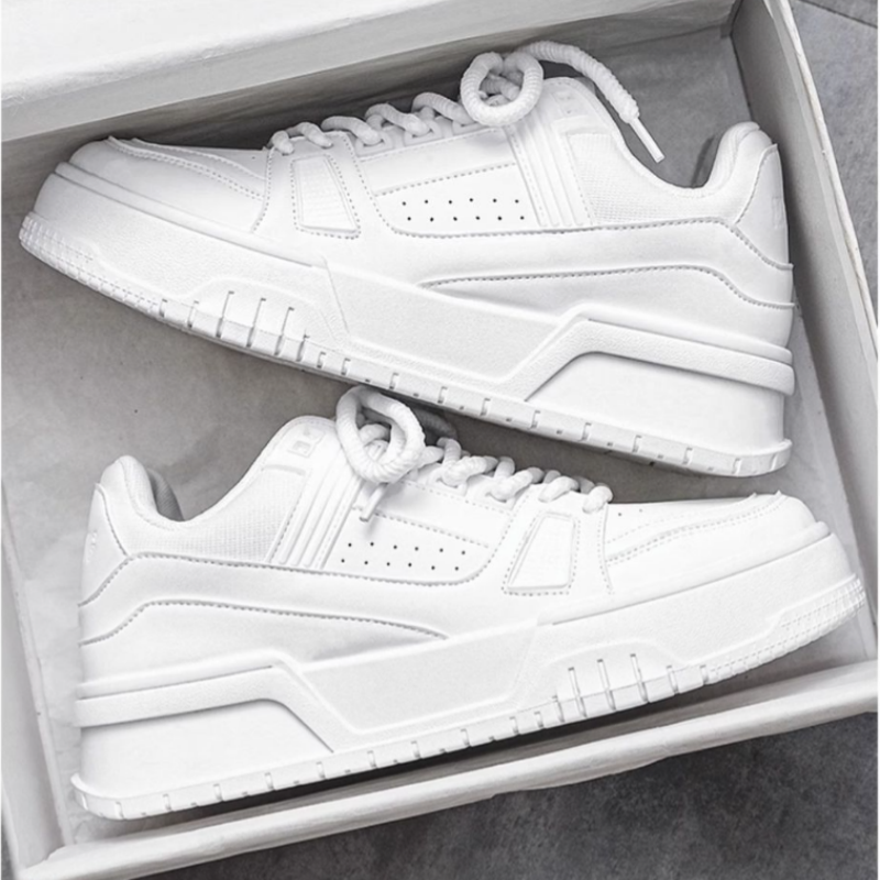 New Trendy Versatile Sports Casual Shoes Black Low-top Lace-up Skateboard Shoes Thick-soled Elevated Breathable Walking Shoes