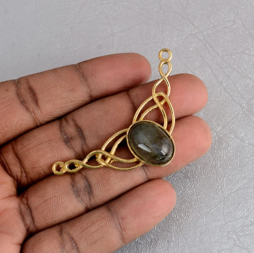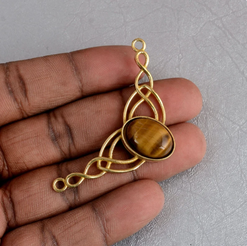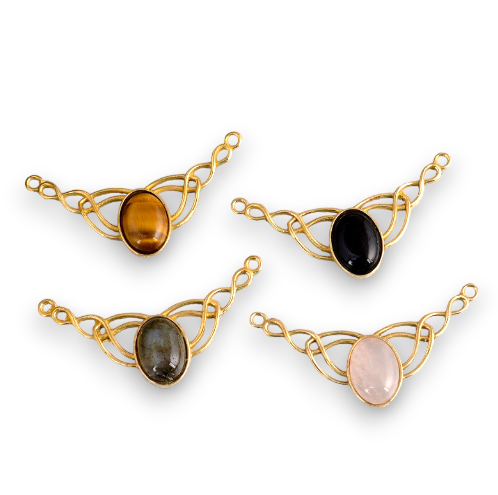 Celtic Knot Pendant With Natural Gemstones Brass Gold Plated Connector Charm Rose Quartz Labradorite Onyx Tiger Eye Jewelry DIY