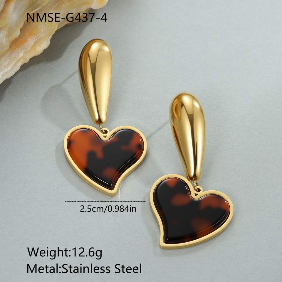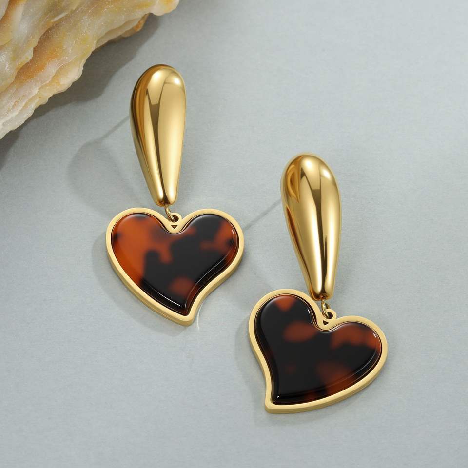 New Trendy Women Tortoiseshell Tortie Resin Earrings Stainless Steel Heart Flower Shaped Drop Earrings for Autumn Winter