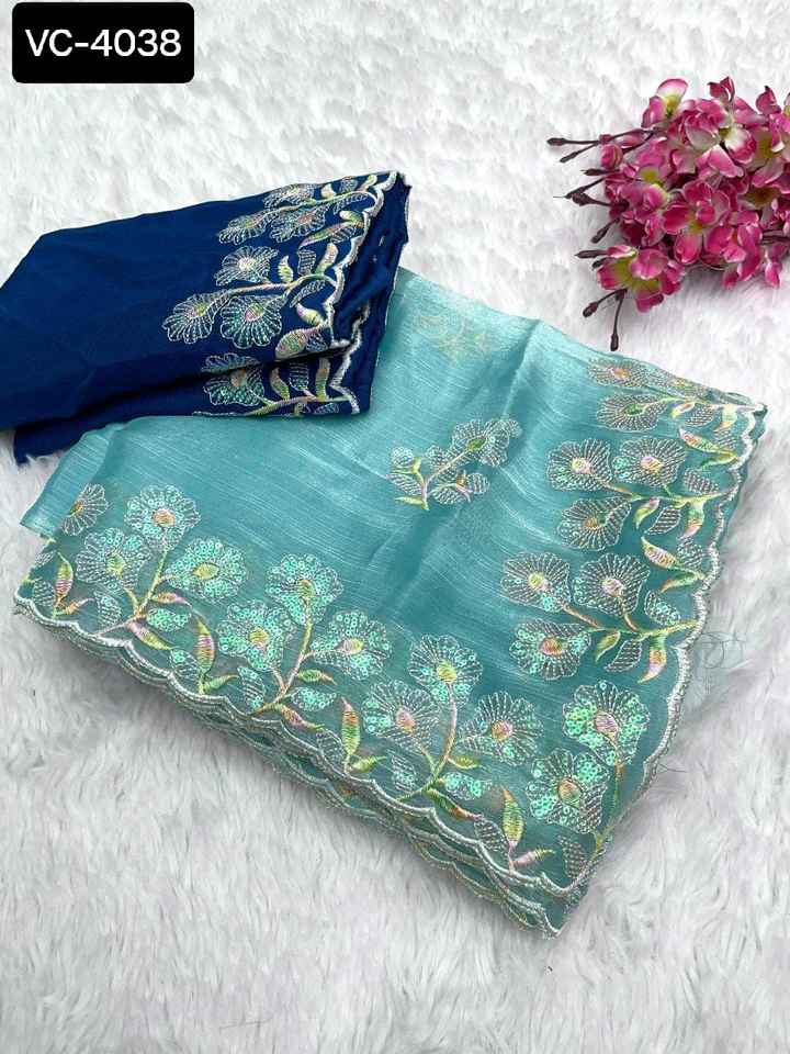 New Trendy Women Wear Jimmi Cho Fabric with Sequence Embroidery Work Saree and Satin Banglory Silk with Sequence Work Blouse
