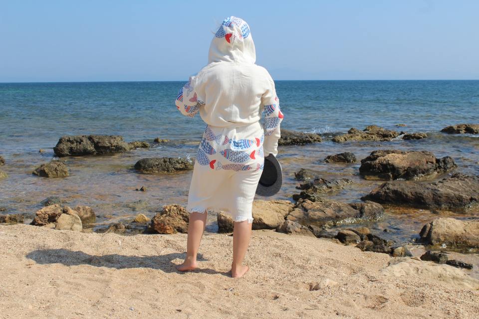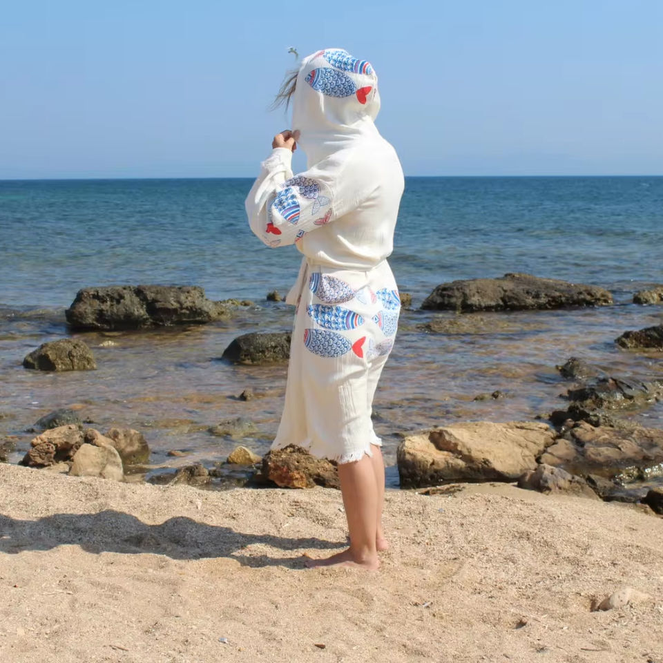 New Turkish Soft Muslin Hooded Bathrobe Colourful Printing Women Men Kids Beach Towel Spa Bathroom Home Hotel Quick Drying