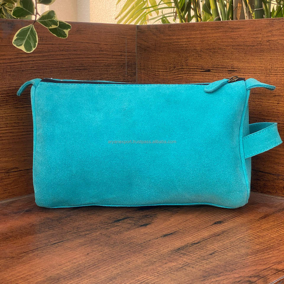 New Turquoise Accent Unisex Embroidered Suede Leather Hanging Cosmetic & Makeup Bag New Boot Stitch Travel Multi Usage Wash Kits