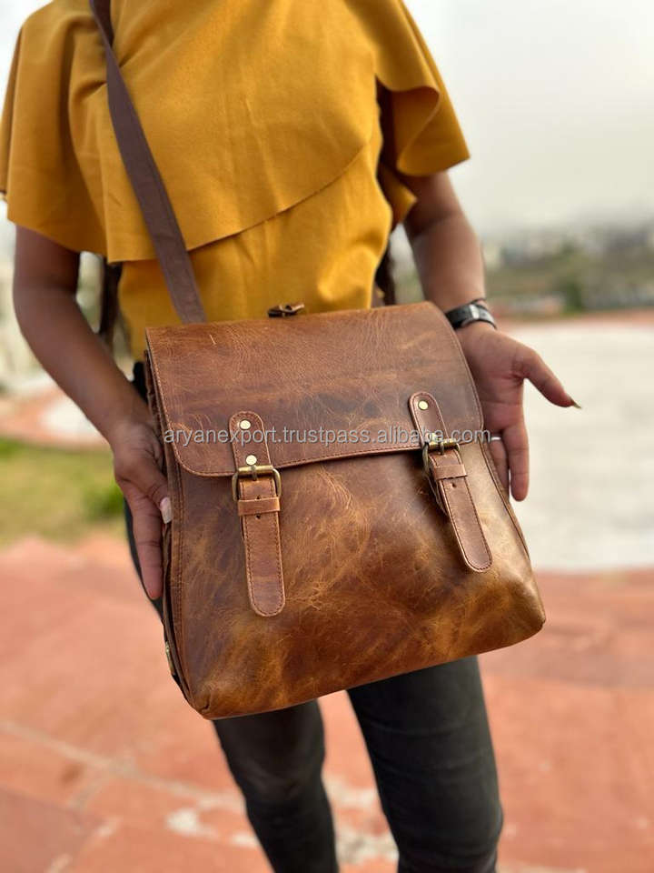 New Two in One Messenger With Backpack Full Grain Crunch Leather Real Handmade Travel Bags Rucksack Multi Uses School Backpacks