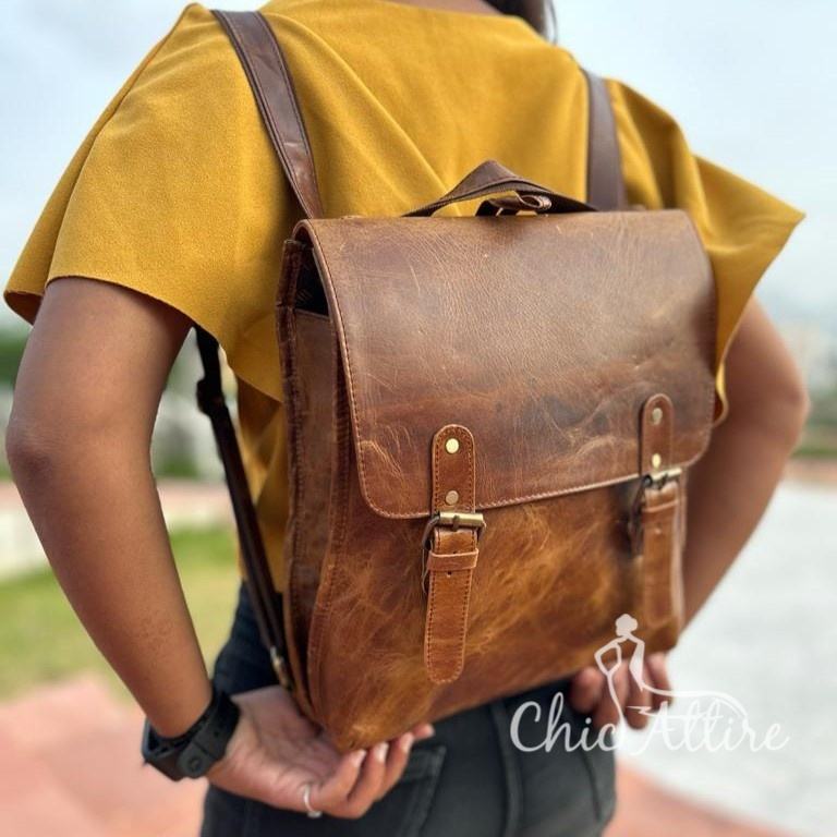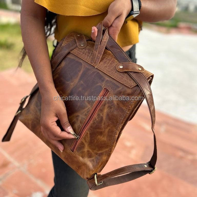 New Two in One Messenger With Backpack Full Grain Crunch Leather Real Handmade Travel Bags Rucksack Multi Uses School Backpacks