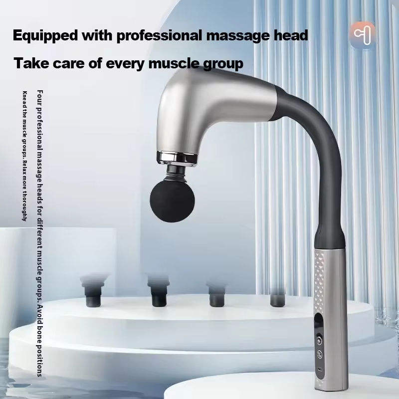 New U-shaped Brushless Back Massager Deep Tissue Extension Handle Massage Gun 9 Speed Levels 1500mAh Battery 4 Massage