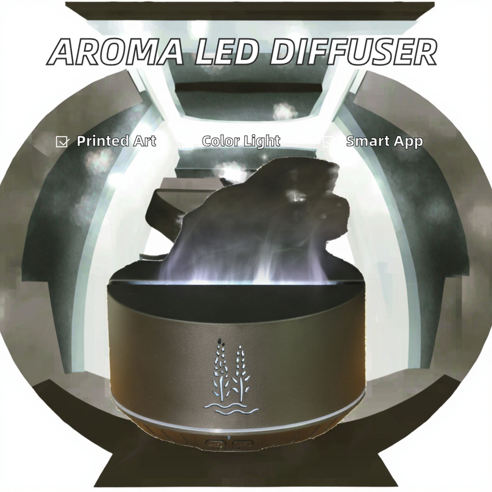 New Ultrasonic Aromatherapy Humidifier LED Color Light Flame Essential Oil Diffuser Large Capacity 1 Year for Household Use