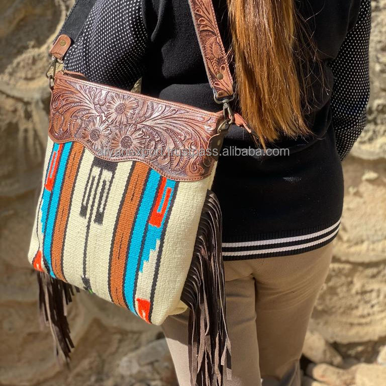 Product name:Real handcrafted Tooled Leather Aztec bag