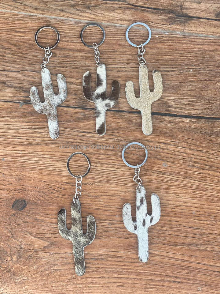 Cowhide Leather Keychain Leopard Cow Print Leather Keyrings