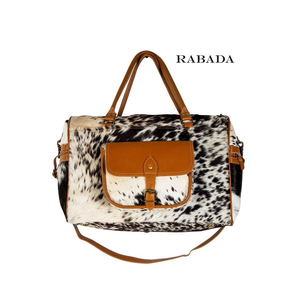 New Unisex Travel Bag Western Style Handmade Cowhide Fur Leather Luggage Multi-Use Big Size Duffel Bag with Zipper Closure