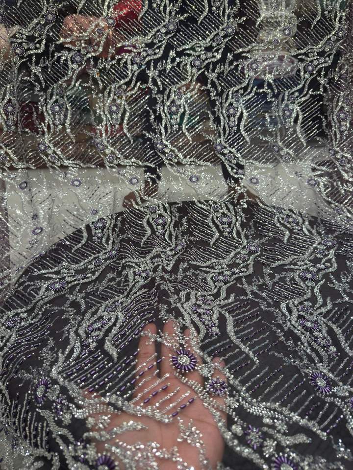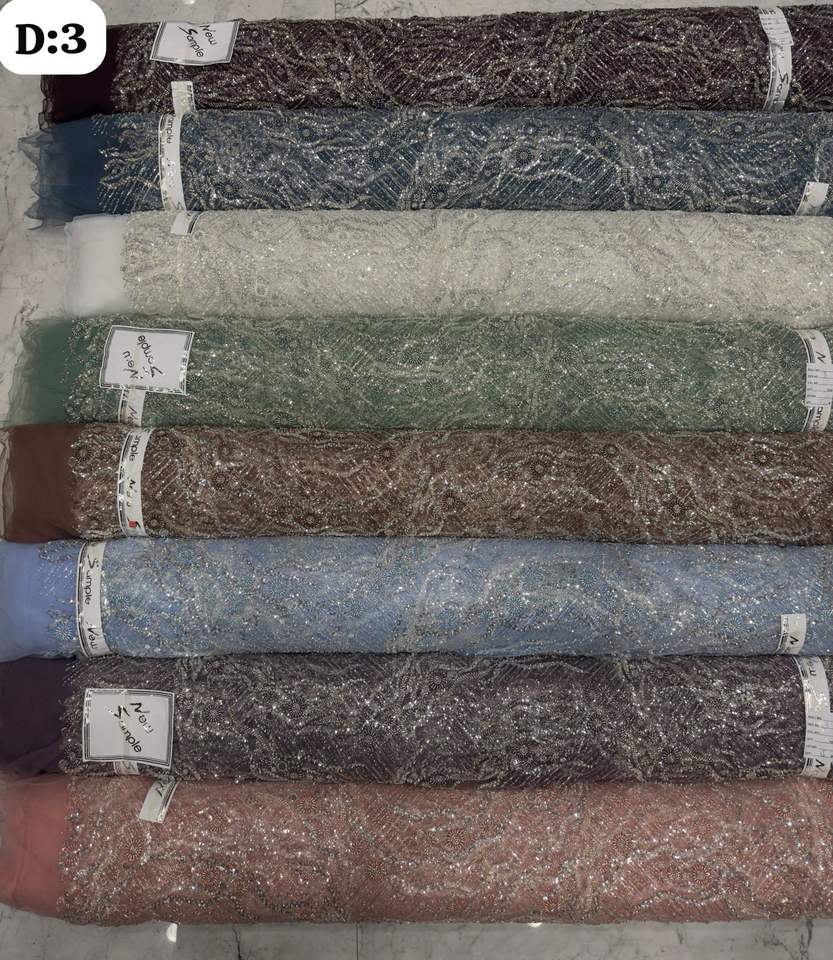 New Updated Handwork Beads Imported Net Fabric for Making Bridal Dresses Available in Bulk Quantity