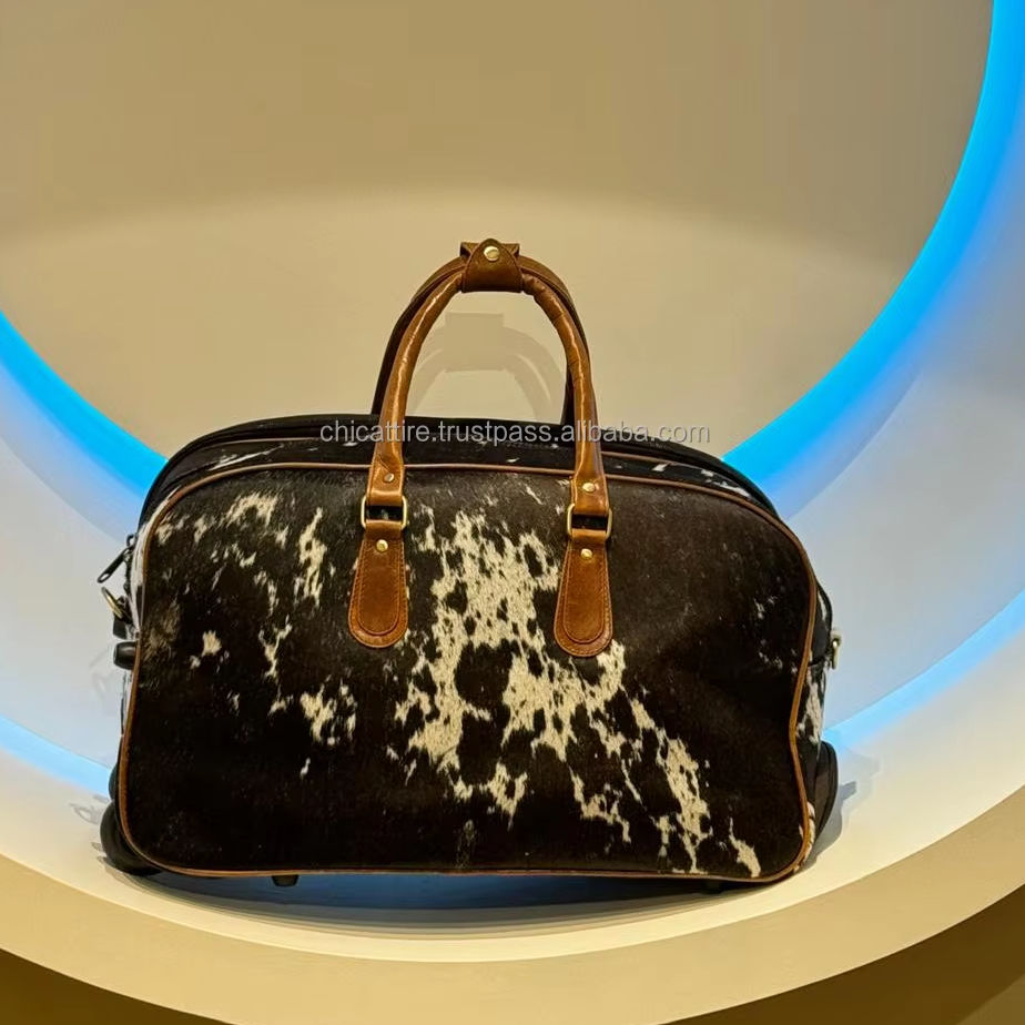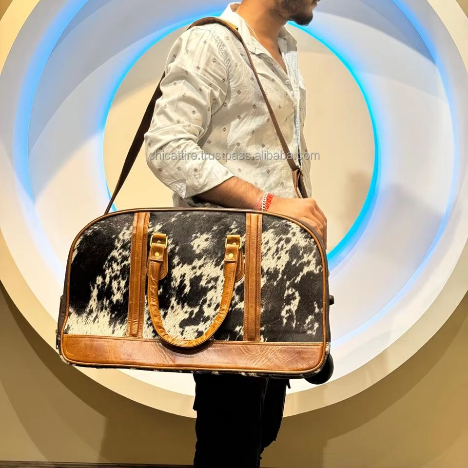 New Vintage Classical Genuine Leather Men Duffle Traveling Bag With Wheel Trolley Case Large Capacity Weekend Bag