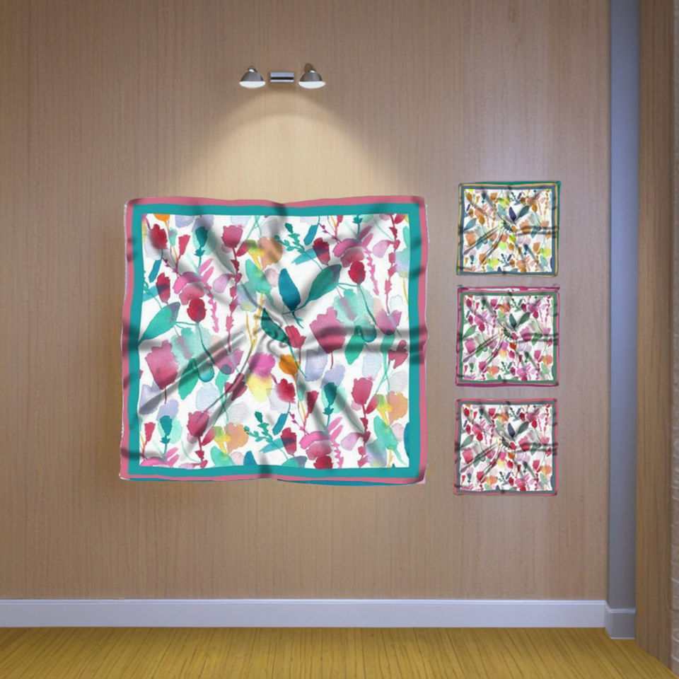 New Vintage Custom Logo Women 90x90cm Satin Scarf Abstract Floral Square Head Wrap Custom Printed Neck Scarf Dot Leaf Pattern