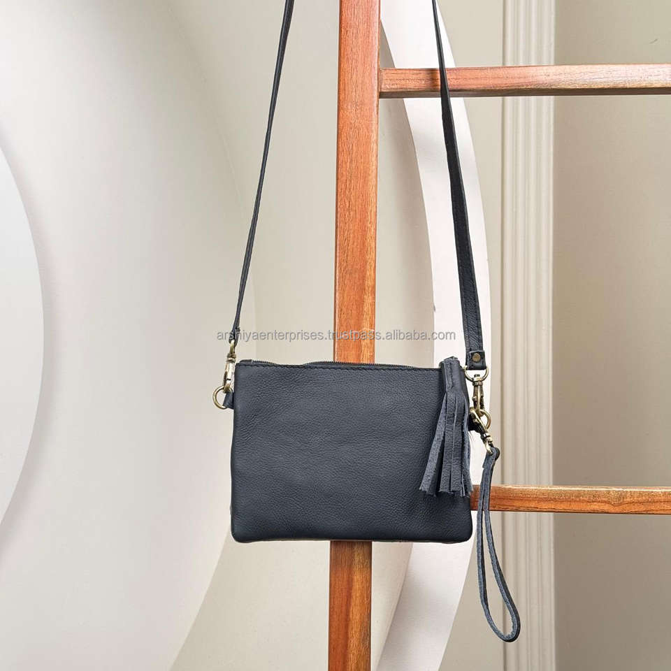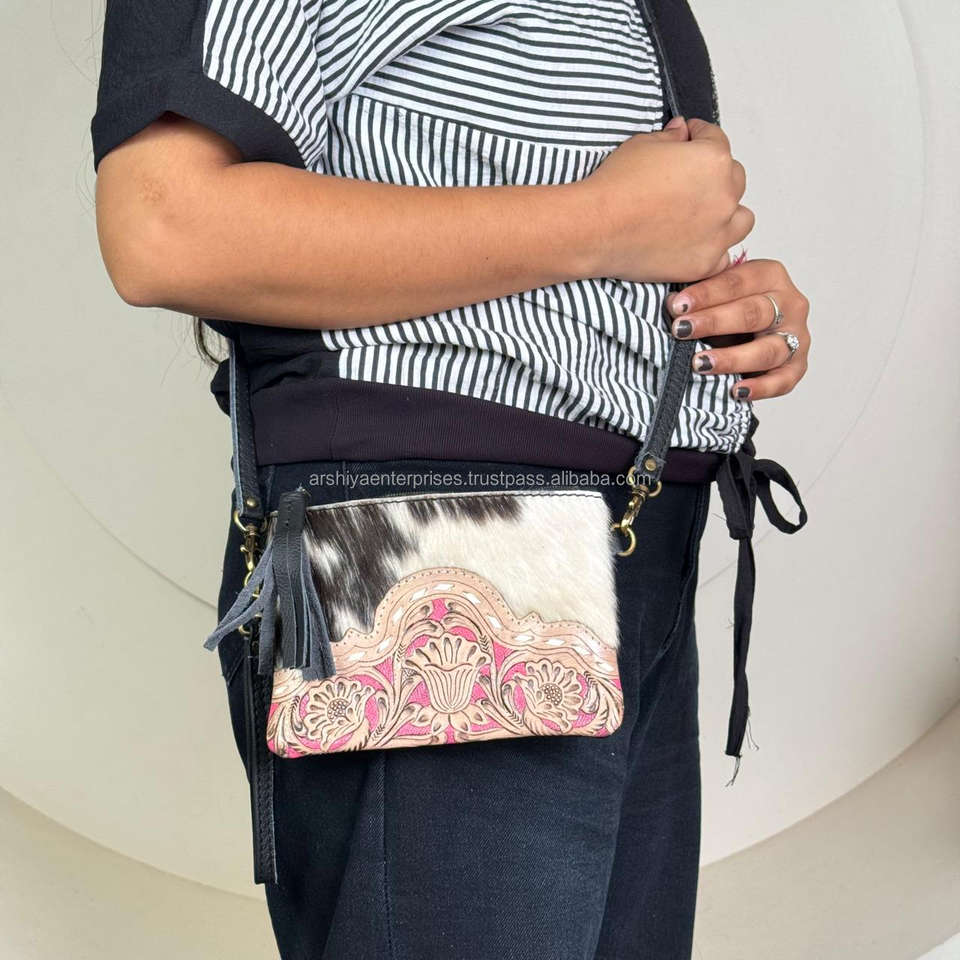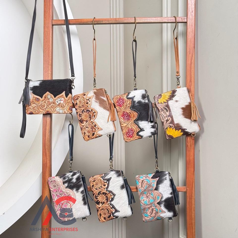 Product Name:Hand Tooled Leather Wristlet Crossbody Handbag