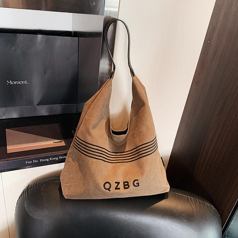 New Vintage Small-scale Relaxed Stripe Lettered Mother-and-daughter Tote Bag Lightweight Bag for Women