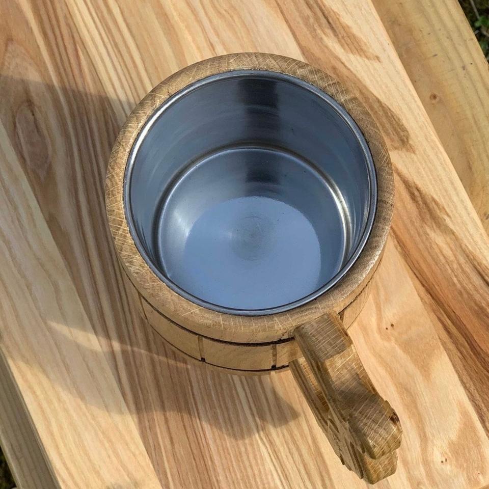 New Vintage Style Medieval Wooden Barrel Double Wall Coffee Beer Cups Stainless Steel Customized Logo Wooden Tankards