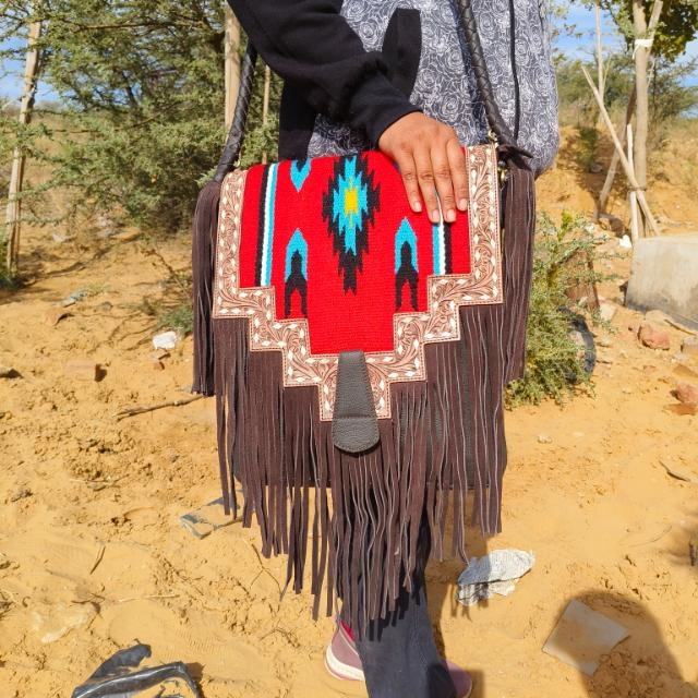 Genuine Leather Blanket Fringe Bag