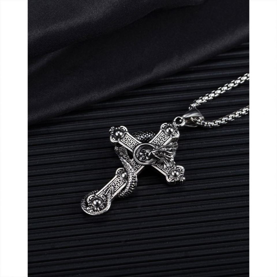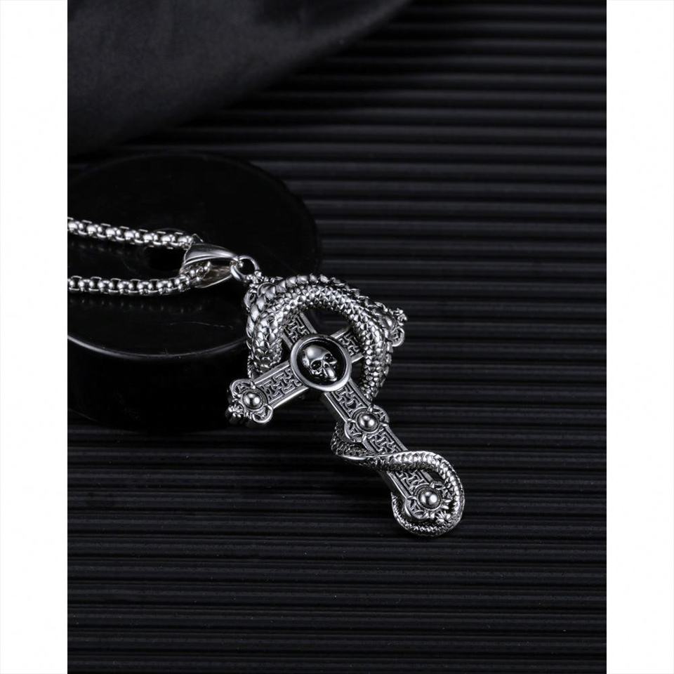 New Vintage Titanium Steel Skull Cross Pendant Personality Hip Hop Coiling Dragon Men's Necklace