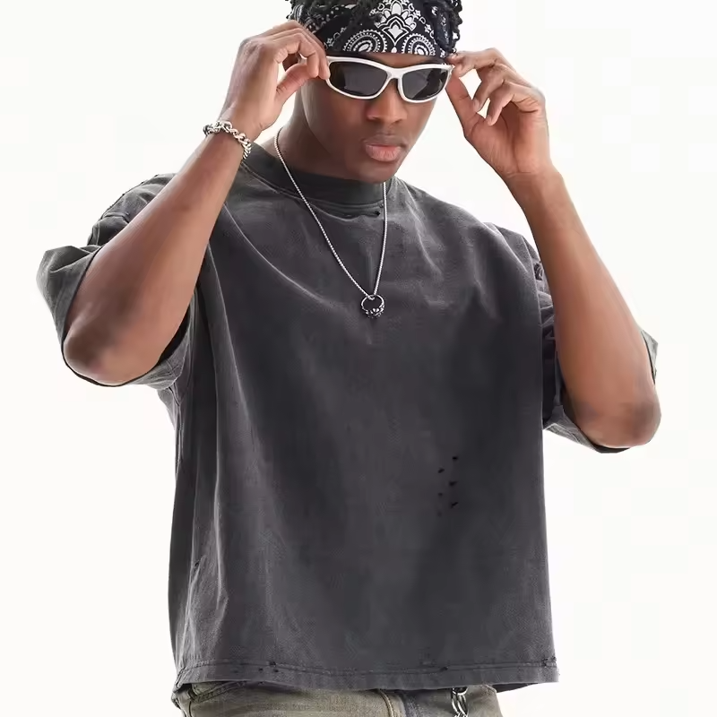 New Washed Distressed Cropped Boxy T Shirt Custom High Quality 250grams Cotton Acid Wash Men's Clothing T-shirt for men