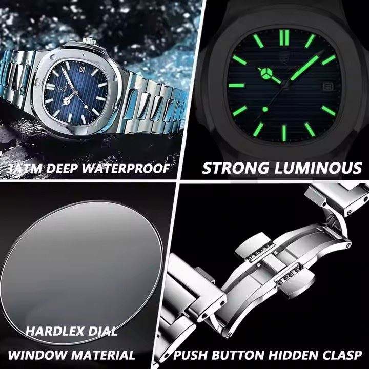 New Watch Men P613 Reloj Hombre Custom Logo Stainless Steel Quartz Watches for Man Luxury Waterproof Date Men's Wrist Watch