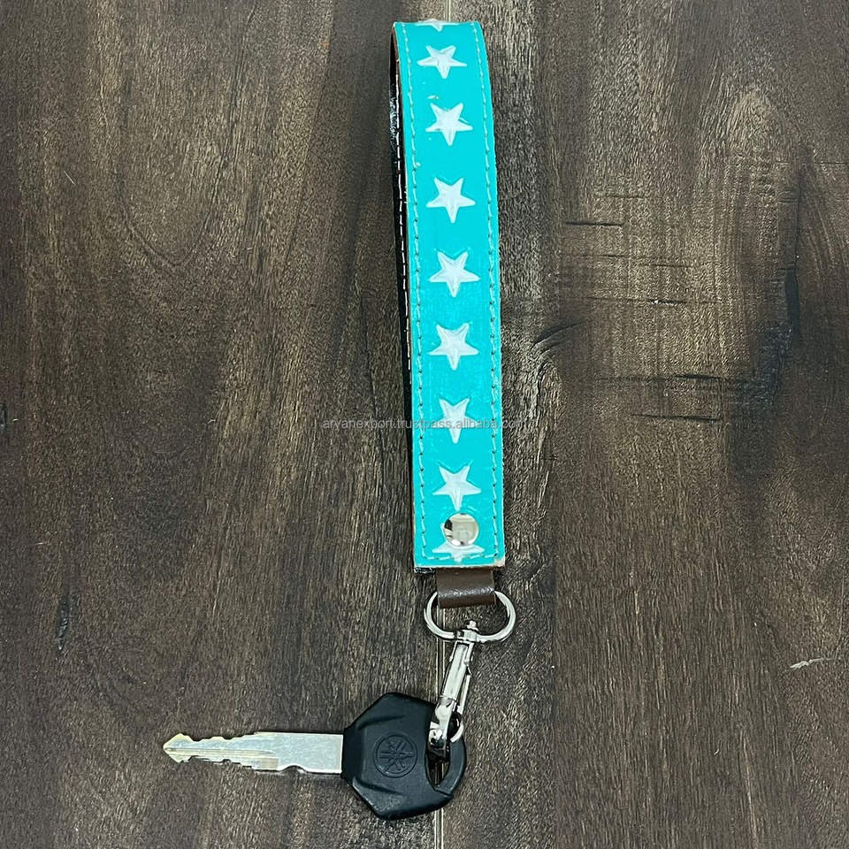 New Western Customized Handcrafted Genuine Cowhide Leather Wrist Keychain with Star Pattern Stylish Key Clip Holder for Unisex