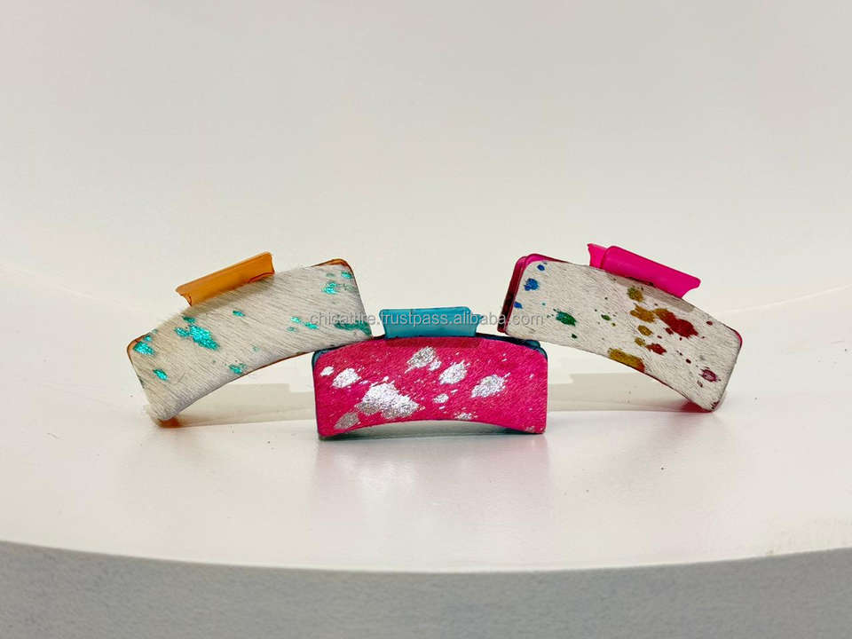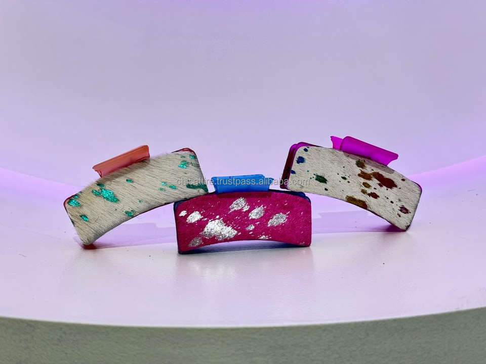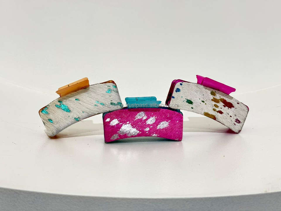 New Western Design Real Hair on Metallic Cowhide Leather Claw Clip Personalized Hair Clip Genuine Leather Accessories for Women