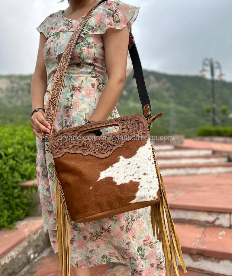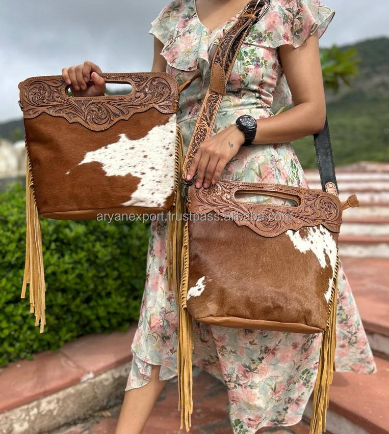 Product name:Western Hand Tooled Cowhide Leather Fringe Handbag