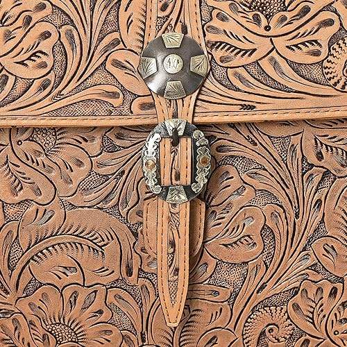New Western Hand Tooled Leather Buck Briefcase Bags Genuine Leather Women Work Bags Carry Crossbody Laptop Bags
