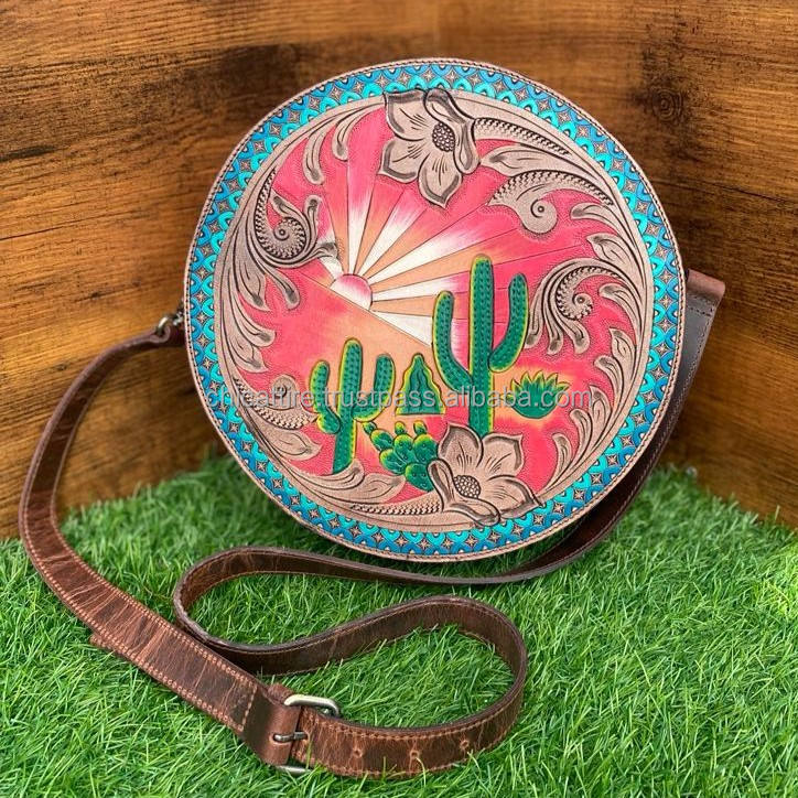 Product name:Hand Tooled Leather Round Crossbody Bag