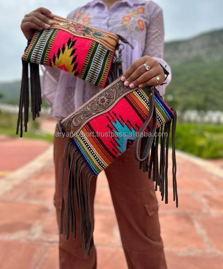 Type:Stylish Tooled Leather Saddle Blanket Fringe Sling Bag