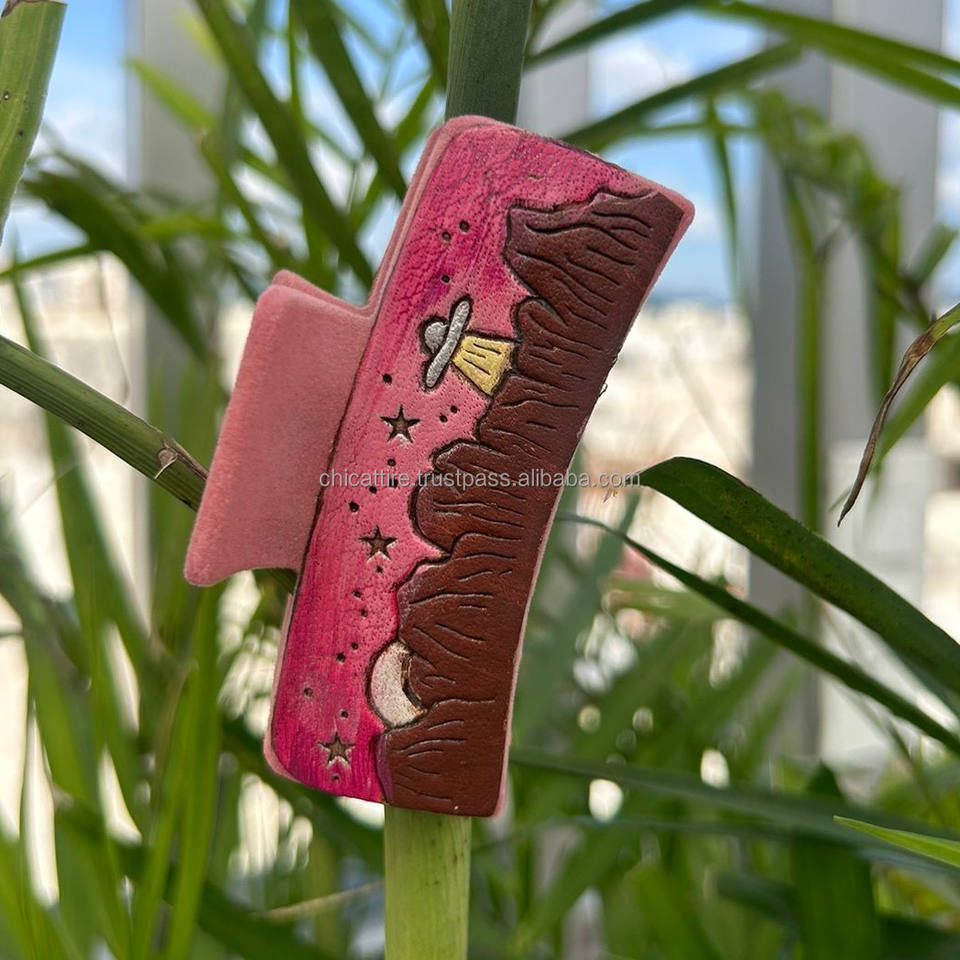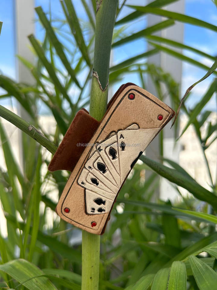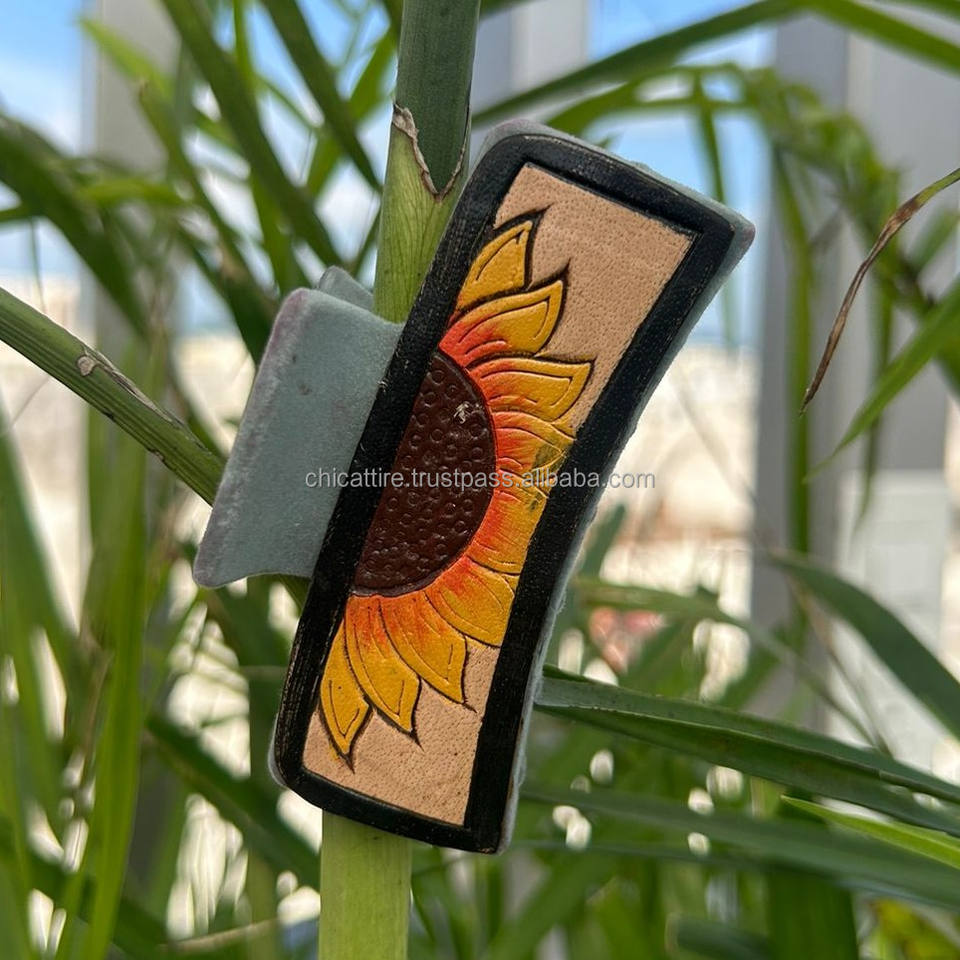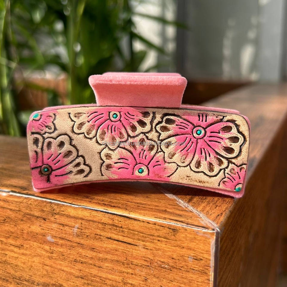 New Western Hand Tooled Leather Hair Claw Clips Western Hair Accessories Wholesale Luxury Floral Genuine Cow Leather Hair Clips