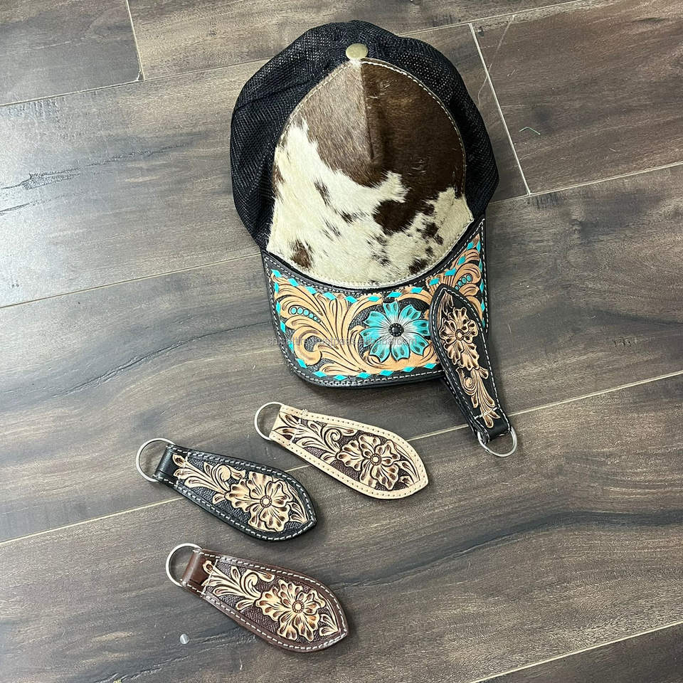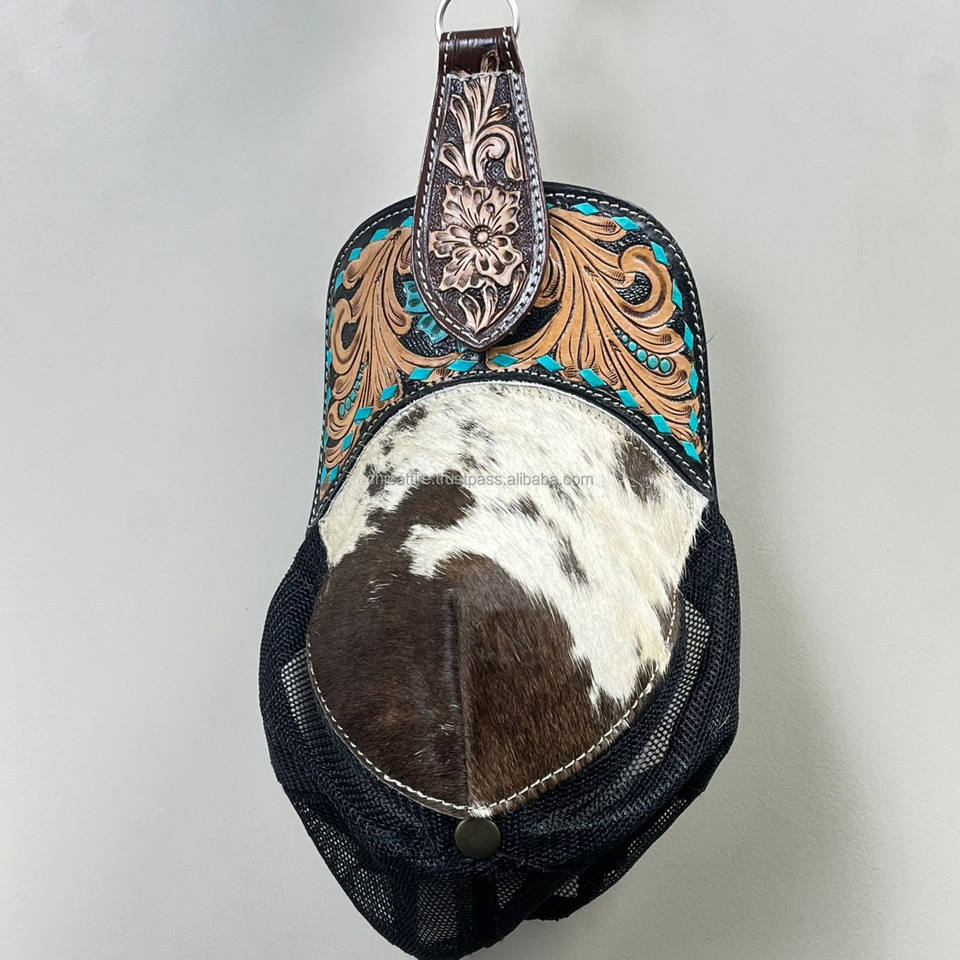 New Western Hand Tooled Leather Hat Clip Strong Magnetic Hat Holder for Belts & Bags Stylish Floral Carved Design Hat Hangers