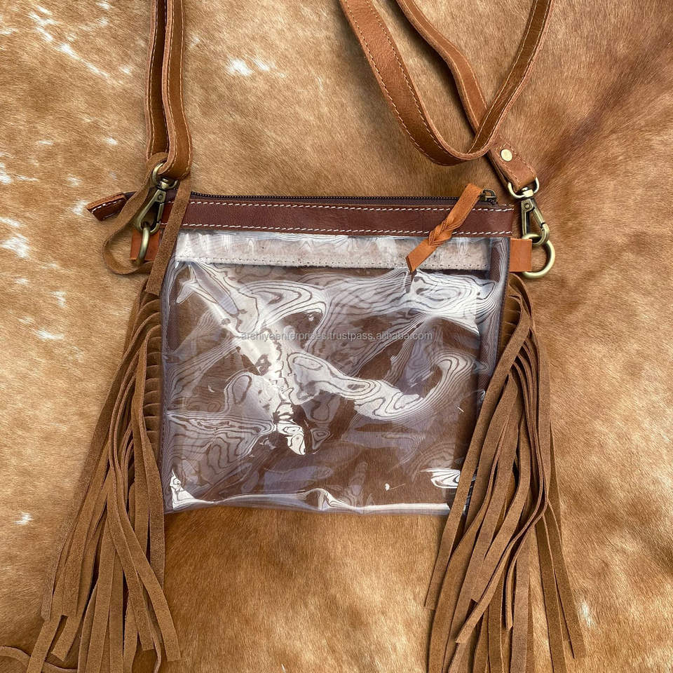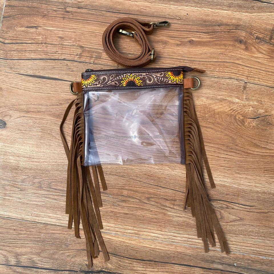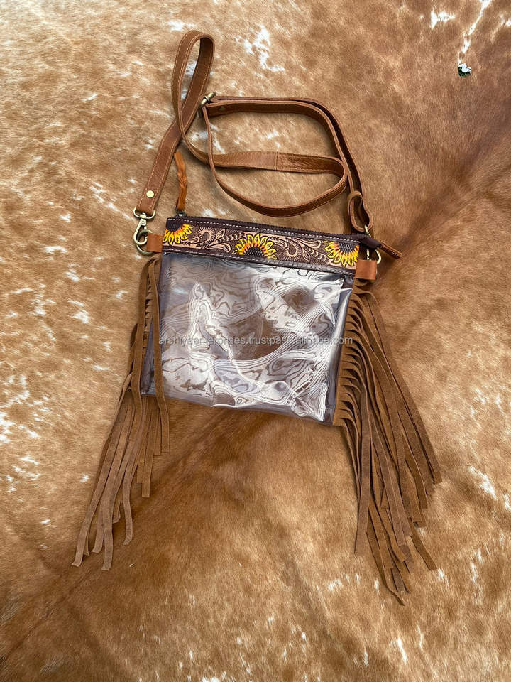 Type:Tooled Leather Fringe Clear Stadium Bag