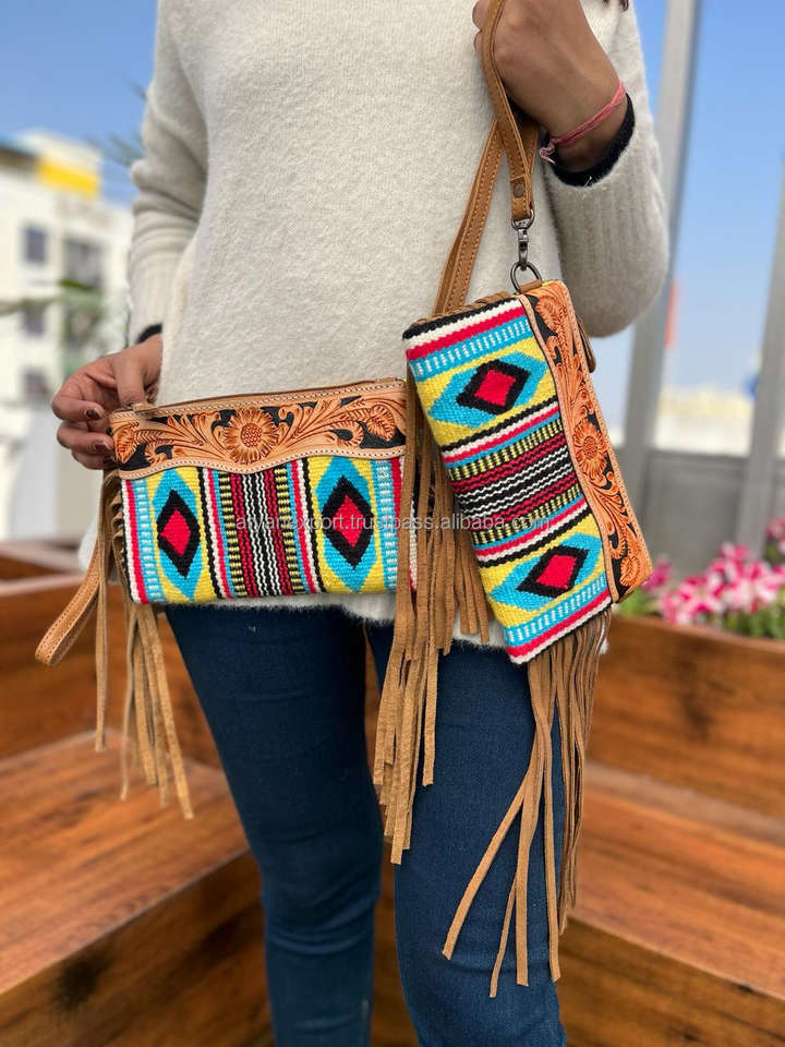 Type:Stylish Tooled Leather Saddle Blanket Wristlet Sling Purse
