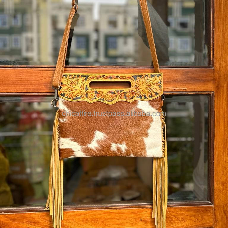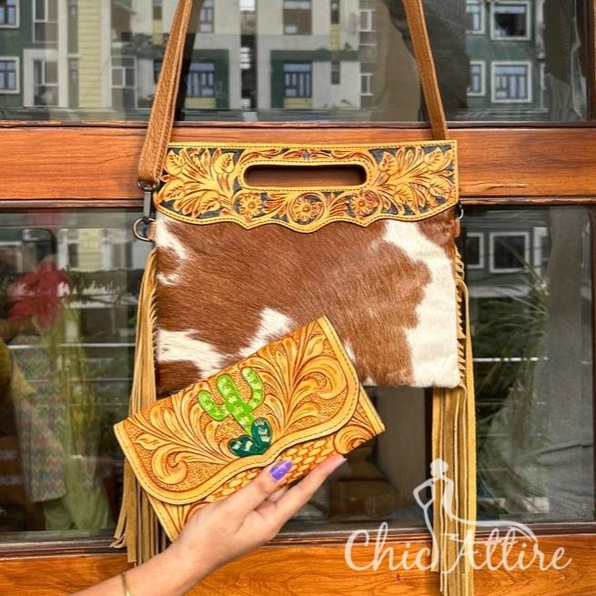 Product name:Hand Tooled Cowhide Leather Fringe Handbags & Wallet Set