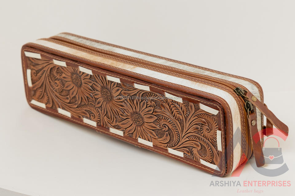 New Western Handmade Hair on Tooled Leather Heat Resistant Curling Iron Cases Great for Traveling Organizer for Women Hair Tools