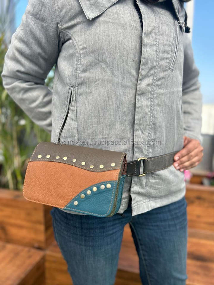 New Western Handmade Real Recycled Leather Waist Bag With Adjustable Belt Unique Vintage Style Festival Fanny Pack Hip Waist Bag
