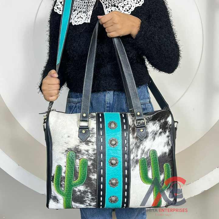 New Western Cowhide Fur Leather Tote Bag Multi Uses Handmade Unisex Travel Bag Big Size Hair on Hide Fur Shoulder Bag for Unisex