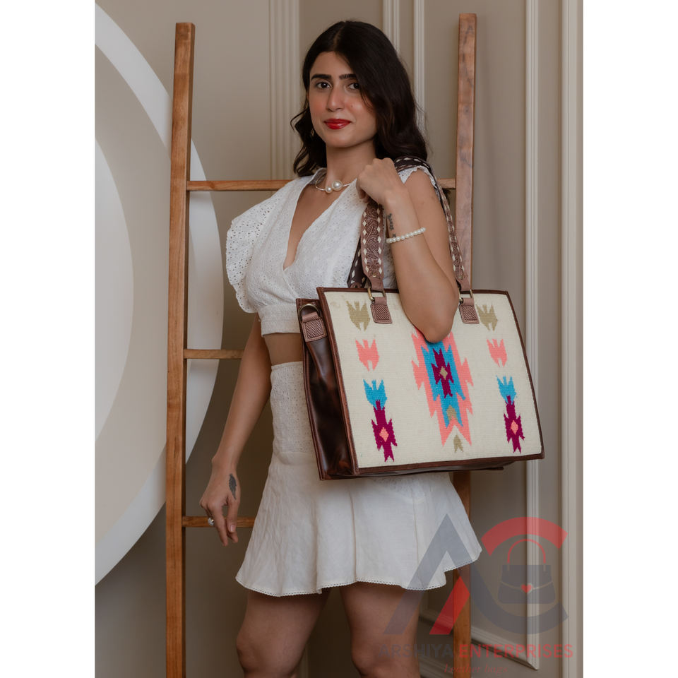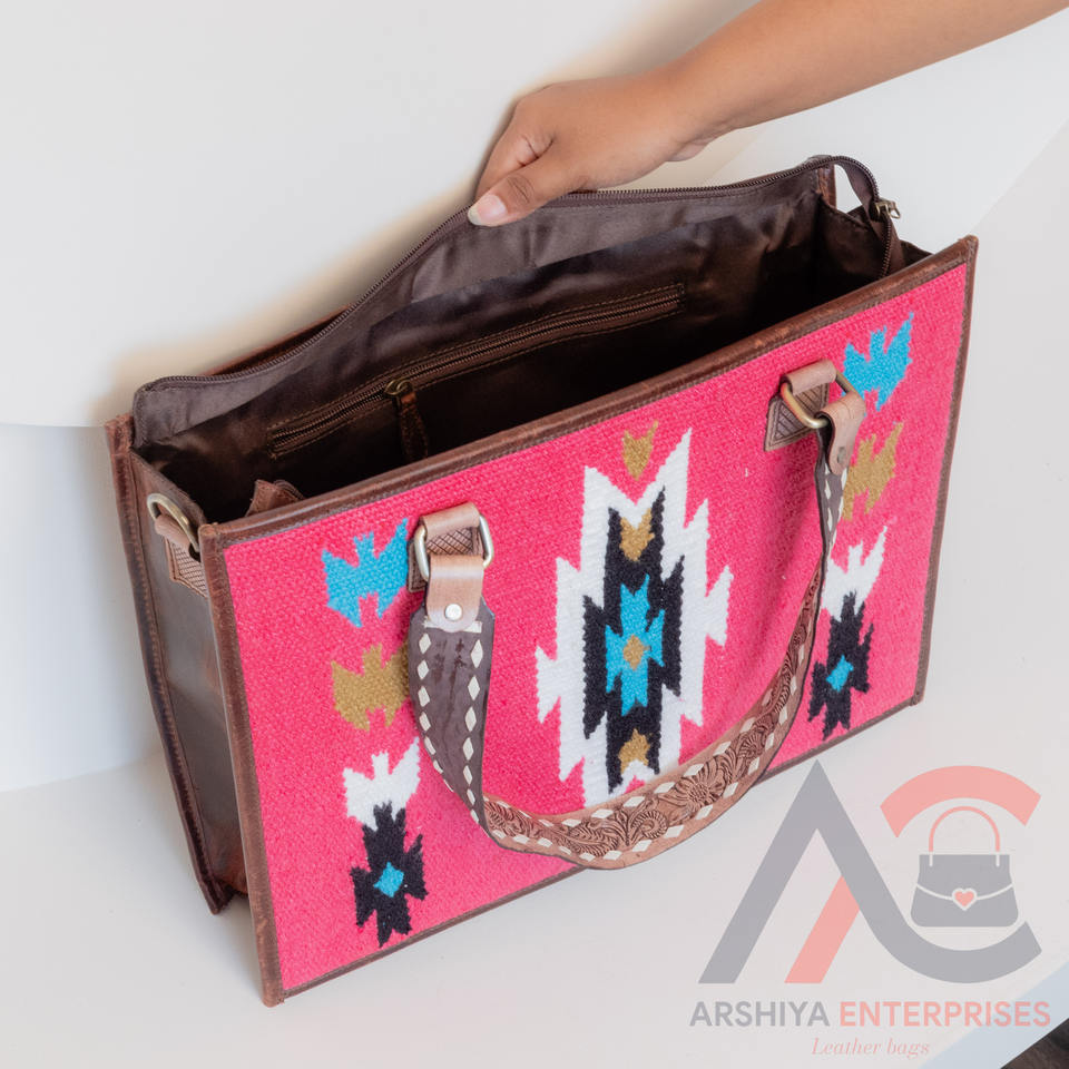 Product Name:Saddle Blanket Genuine Leather Tote Purse