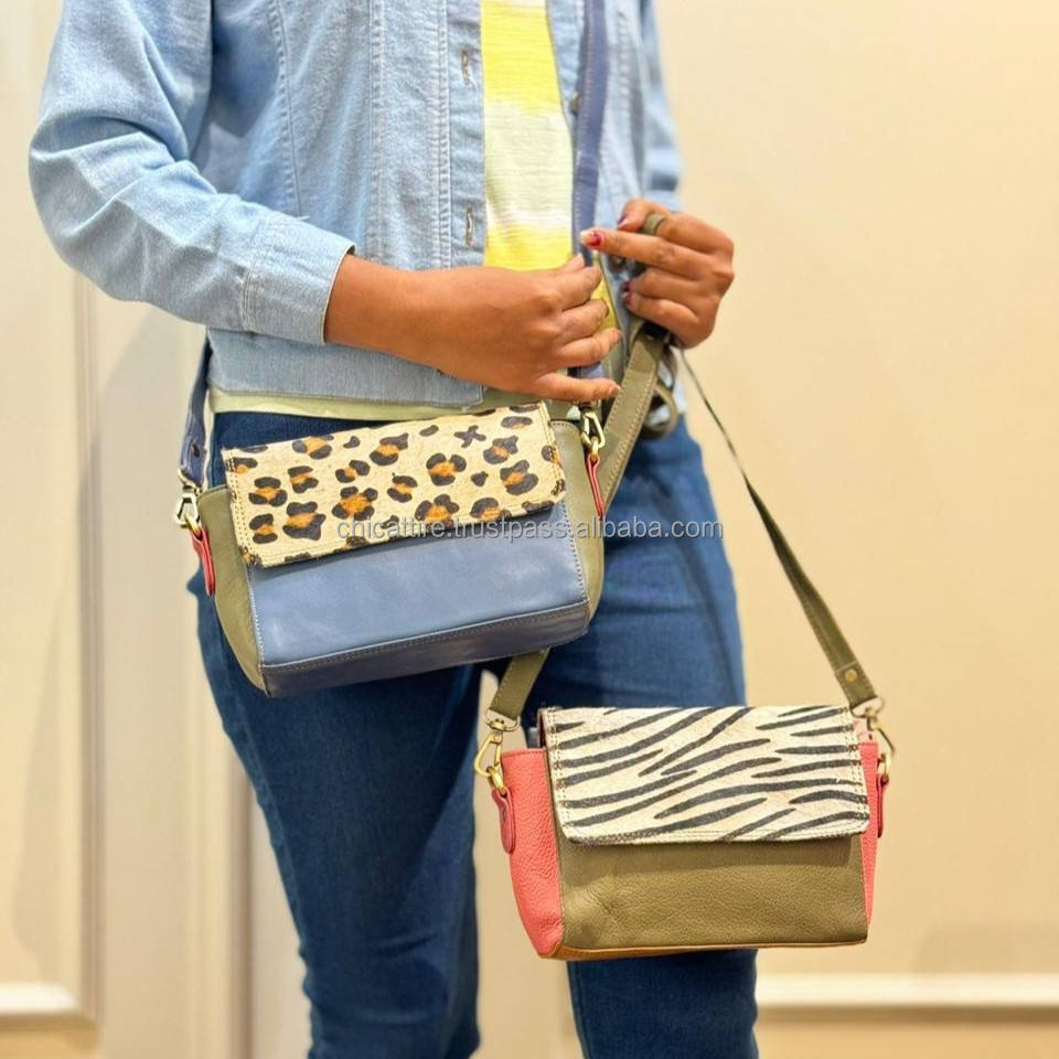 New Western Recycled Leather Crossbody Bags Animal Print Hot Selling Purse Women Stylish Unique Multi Colored Shoulder Sling Bag
