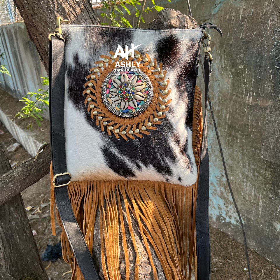 feature:Portable, Others, (1)Cowhiide fur animal printfullbodygenuineleather, (2)Tassel fringe woven bags for women cowhide fur, (3)Faishonable bag backside zip pocket singlestrap