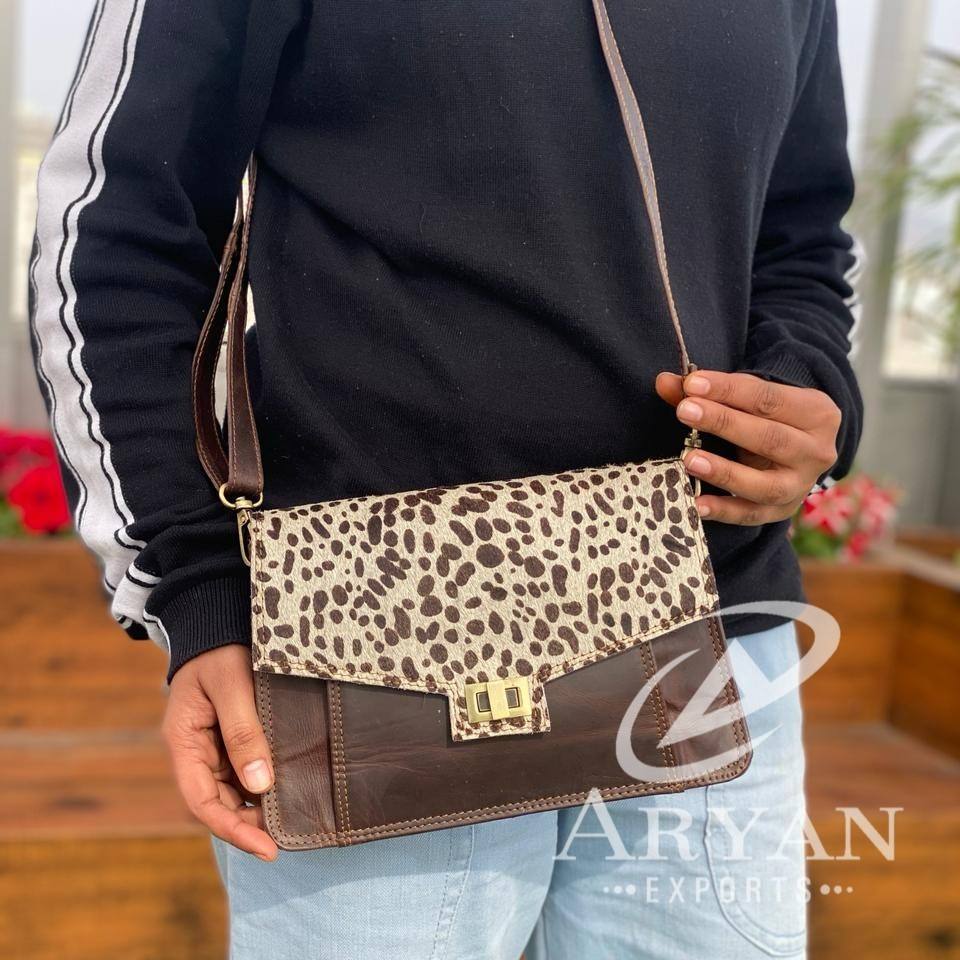 New Western Style Animal Print Fur Leather Shoulder Bags High Quality Fashionable Genuine Animal Fur Leather Sling Side Handbags