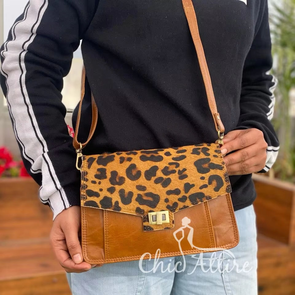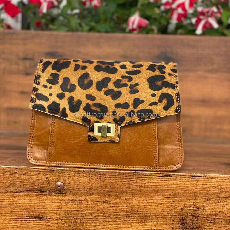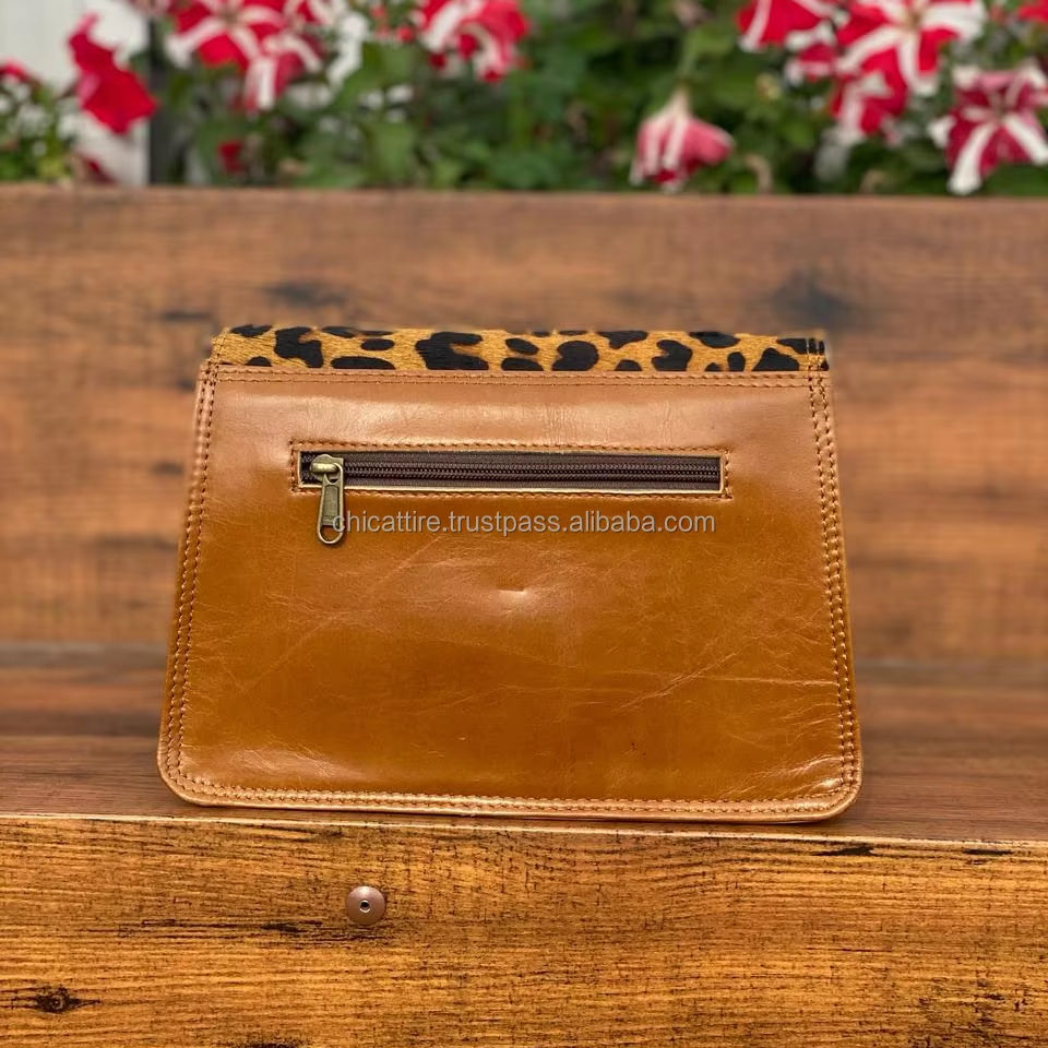 New Western Style Animal Print Fur Leather Shoulder Bags High Quality Fashionable Genuine Animal Fur Leather Sling Side Handbags
