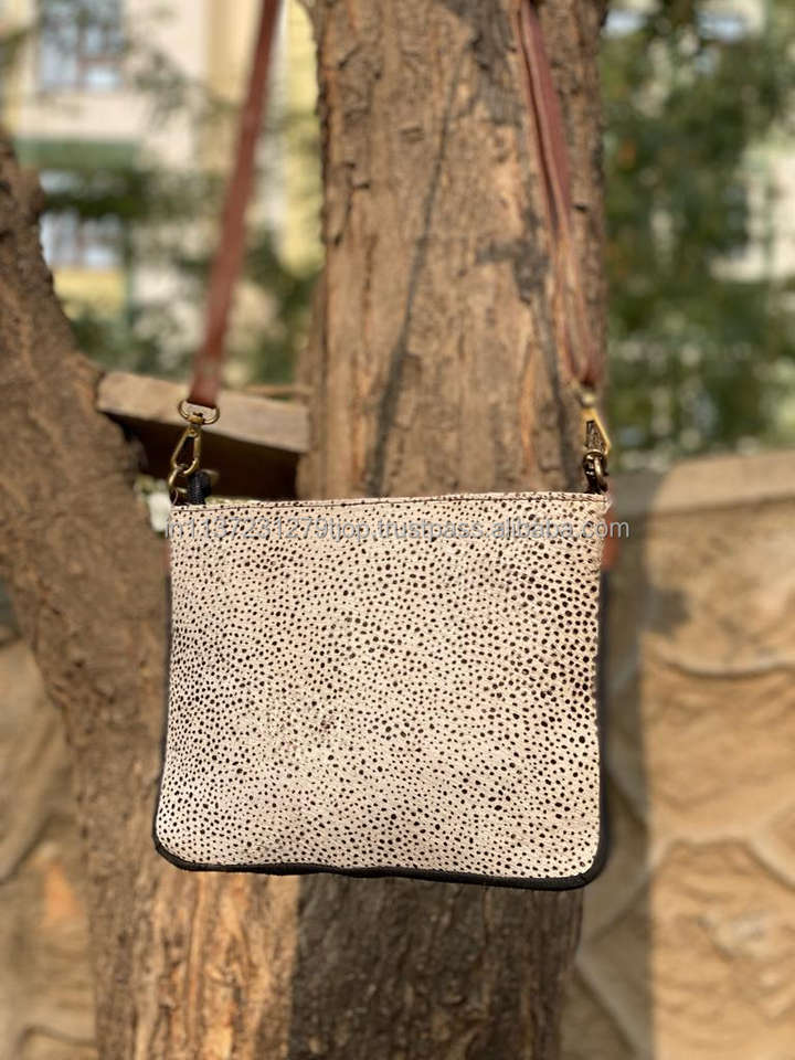 New Western Style Animal Print Fur Leather Cellphone Sling Bag High Quality Fashionable Real Handmade Fur Leather Crossbody Bags