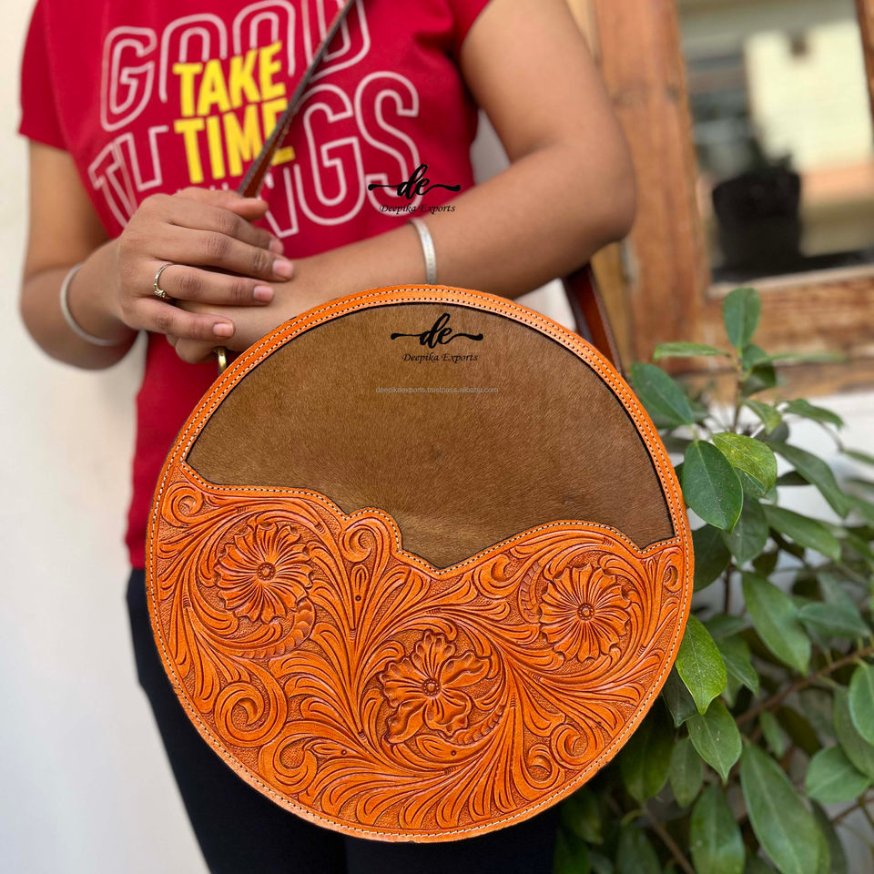 New Western Style Cowhide Leather Hand Tooling Carving Stylish Handbag Sling Bag Crossbody Shoulder Boho Bags Women's