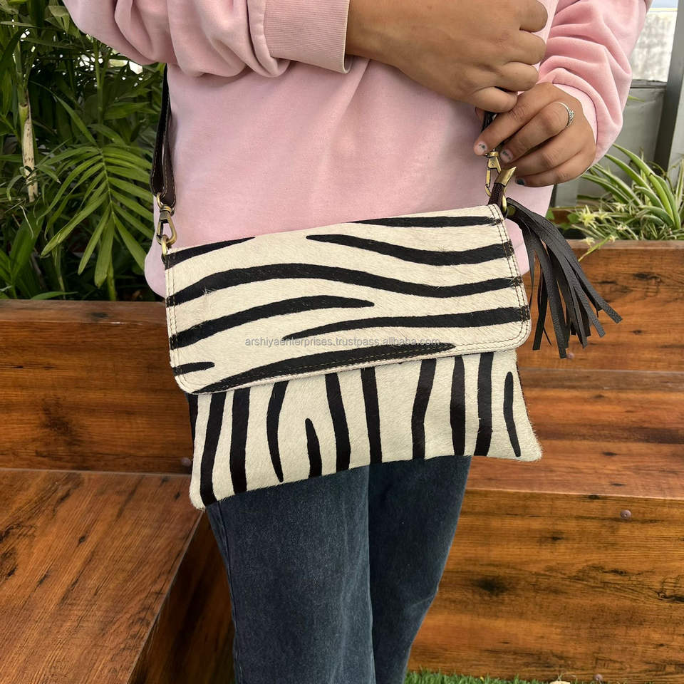 New Western Style Genuine Animal Fur Leather Wristlet Sling Bags High Quality Fashionable Crossbody Messenger Shoulder Bag