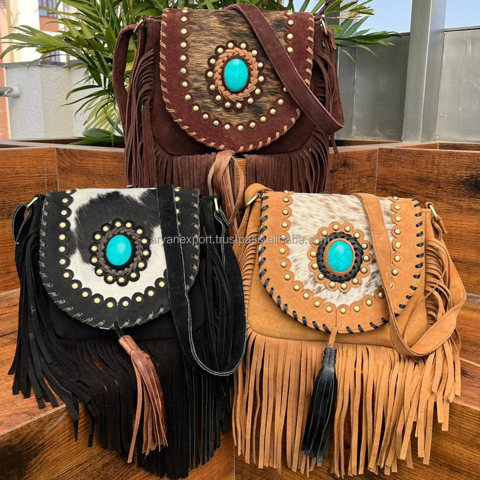 Product name:Cowhide Suede Leather Tassel Hobo Handbag